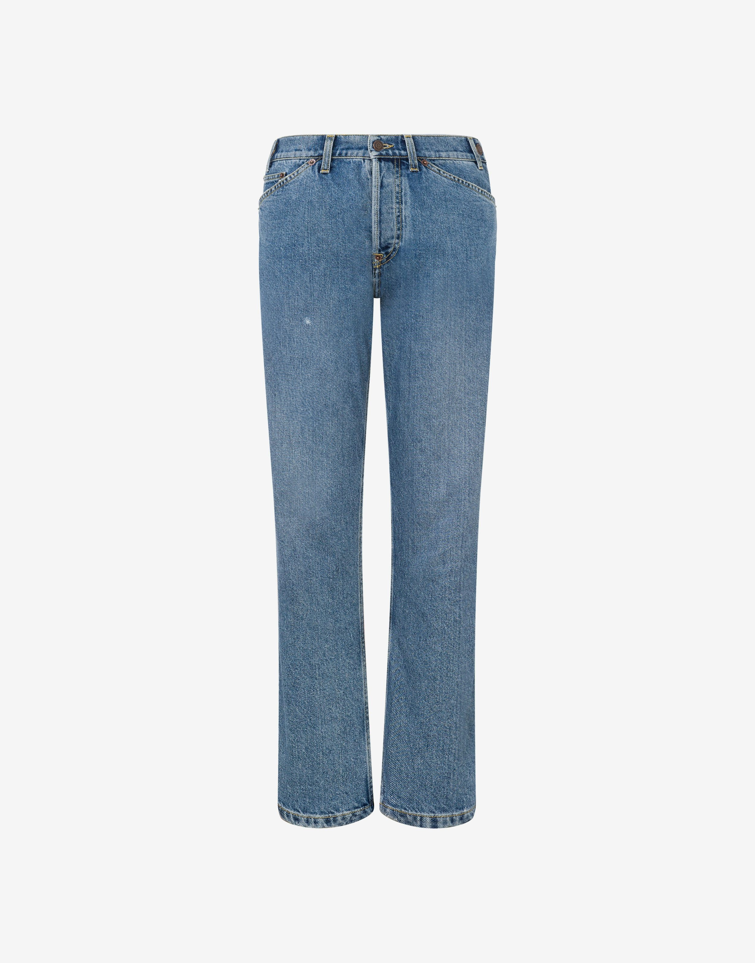 BLUE DENIM TROUSERS WITH BACK PATCH FEATURING ARCHIVE LOGO AND LAUREL WREATH. REGULAR FIT REGULAR WAIST THREE FRONT POCKETS BELT LOOPS AT THE WAIST FRONT ZIP AND BUTTON CLOSURE TWO BACK POCKETS FABRIC: 100% COTTON CODE: AEF251E 031905220285