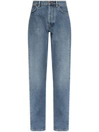 high-rise jeans Highlights - Powder blue - Cotton - Denim - Stonewashed - Logo patch to the rear - High-rise - Belt loops - Front button and zip fastening - Straight leg - Classic five pockets Made in Italy Composition Cotton 100% Washing instructions Read Manufacturer Guidelines