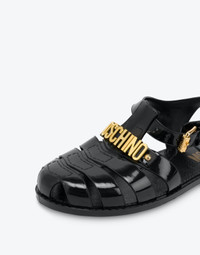 Rubber sandals with gold plated Lettering logo on the front. - Adjustable closure with gold plated buckle - Logo printed on the insole - Rubber sole Bottom:100% Rubber Upper:100% Polyvinyl chloride Code: POLMA16501G1AM20000 FIT - Heel Height : 1.5 cm