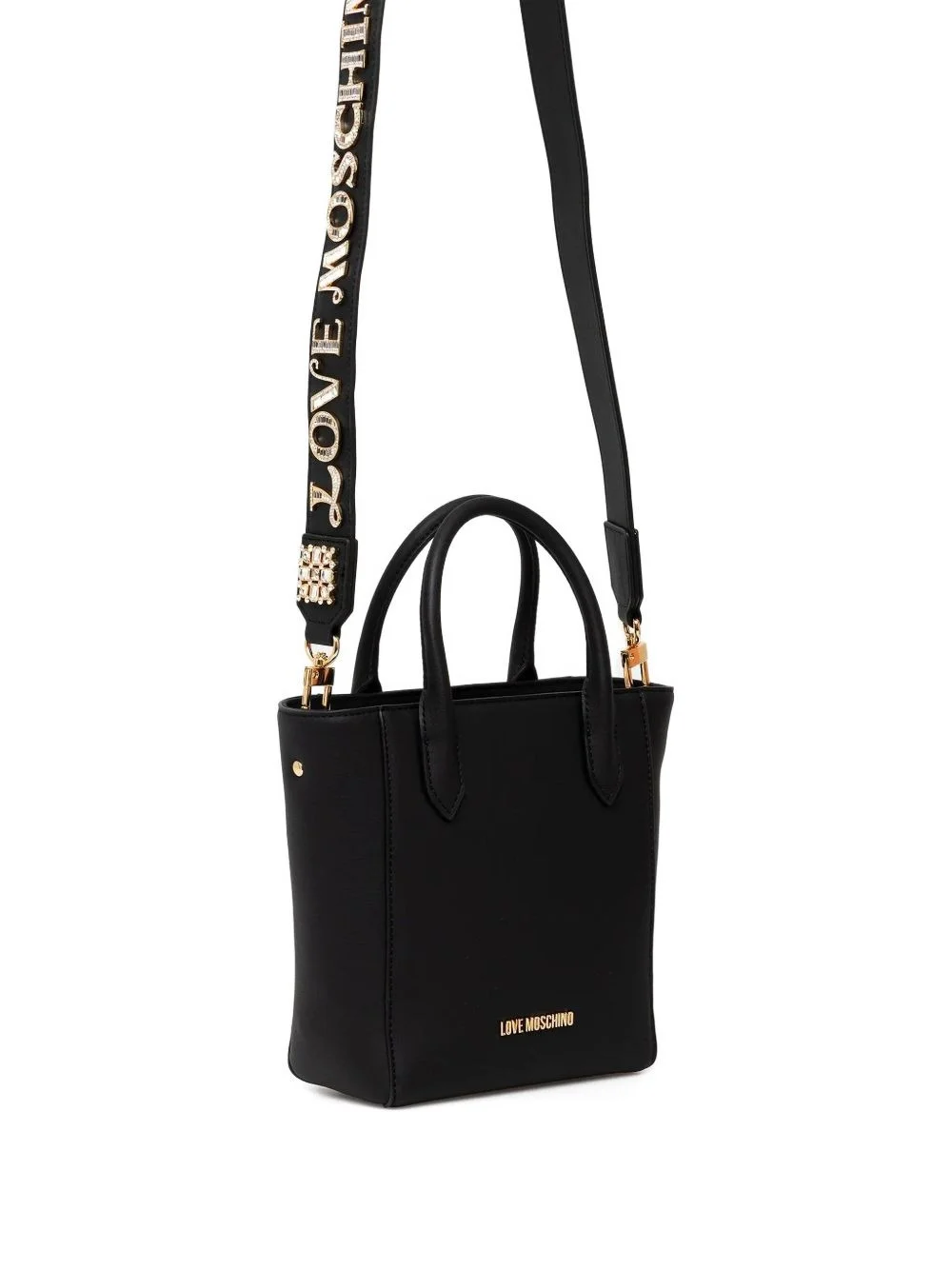 jewel-embellished top-handle bag Highlights - Black - Jewel embellishment - Top handle - Detachable strap - Gold-tone lettering - Zip fastening Imported Composition Outer: Polyurethane 100% SIZE & FIT Measurement DEPTH 3.54 in(9 cm) HEIGHT 7.87 in(20 cm) WIDTH 6.69 in(17 cm)