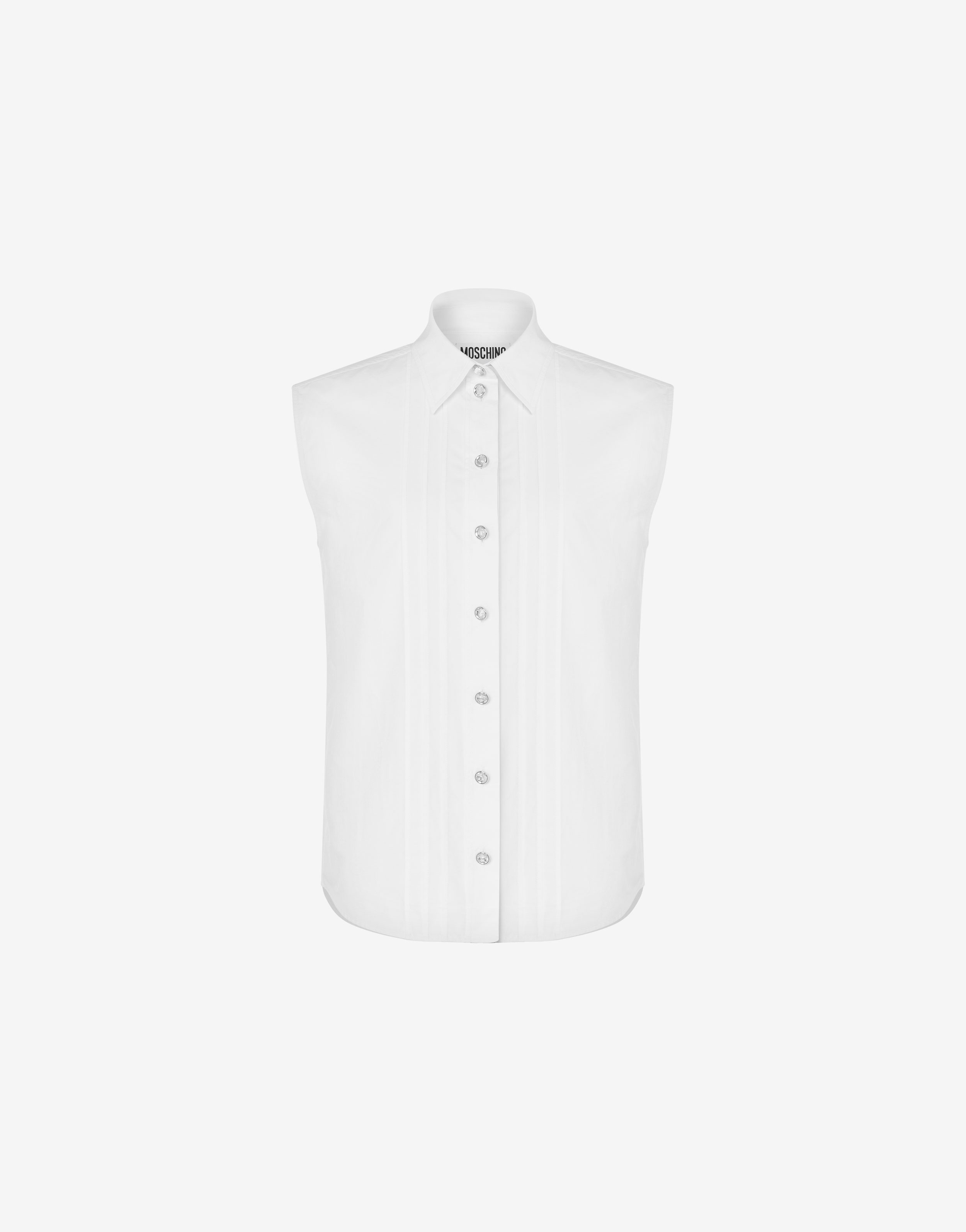 Cotton and nylon poplin sleeveless shirt with jewel buttons on the front and Classic Shirt patch embroidered on the back. - Regular fit - Shirt collar - Fastening on the front with jewel buttons Fabric:59% Cotton, 41% Polyamide Code: AEF241D 022004300001 FIT - Regular fit - Model bust size : 82 - Model height : 1.78 cm - Model Hips : 88 cm - Model size : 40 - Model waist : 60 cm