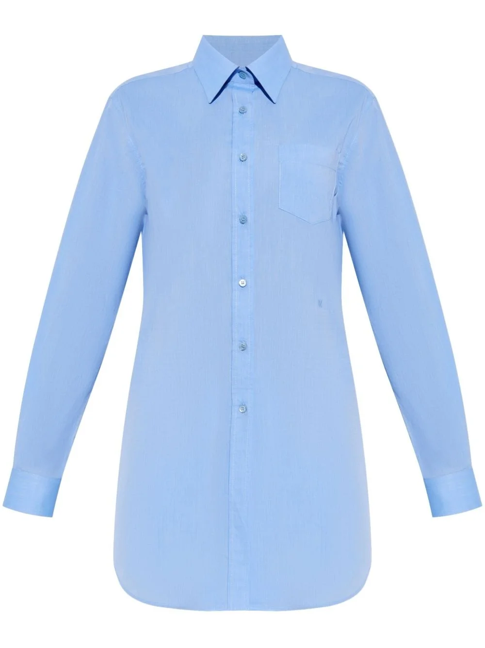 logo-embroidered shirt dress Highlights - Sky blue - Front button fastening - Chest flap pocket - Buttoned cuffs - Curved hem Made in Italy Composition Cotton 100%