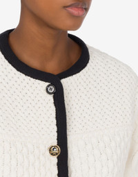 ORGANIC COTTON-BLEND JUMPER WITH CONTRAST DETAILS AND LEATHER LOGO LABEL ON THE BACK. PRODUCT DETAILS REGULAR FIT - TWO FRONT POCKETS - FRONT BUTTON CLOSURE FABRIC: 62% COTTON, 38% POLYAMIDE SKU: AEF251E A058105070003 FITTING & DIMENSIONS - MODEL HEIGHT: 180 CM - MODEL BUST: 80 CM - MODEL WAIST: 60 CM - MODEL HIPS: 89 CM - MODEL SIZE: 40