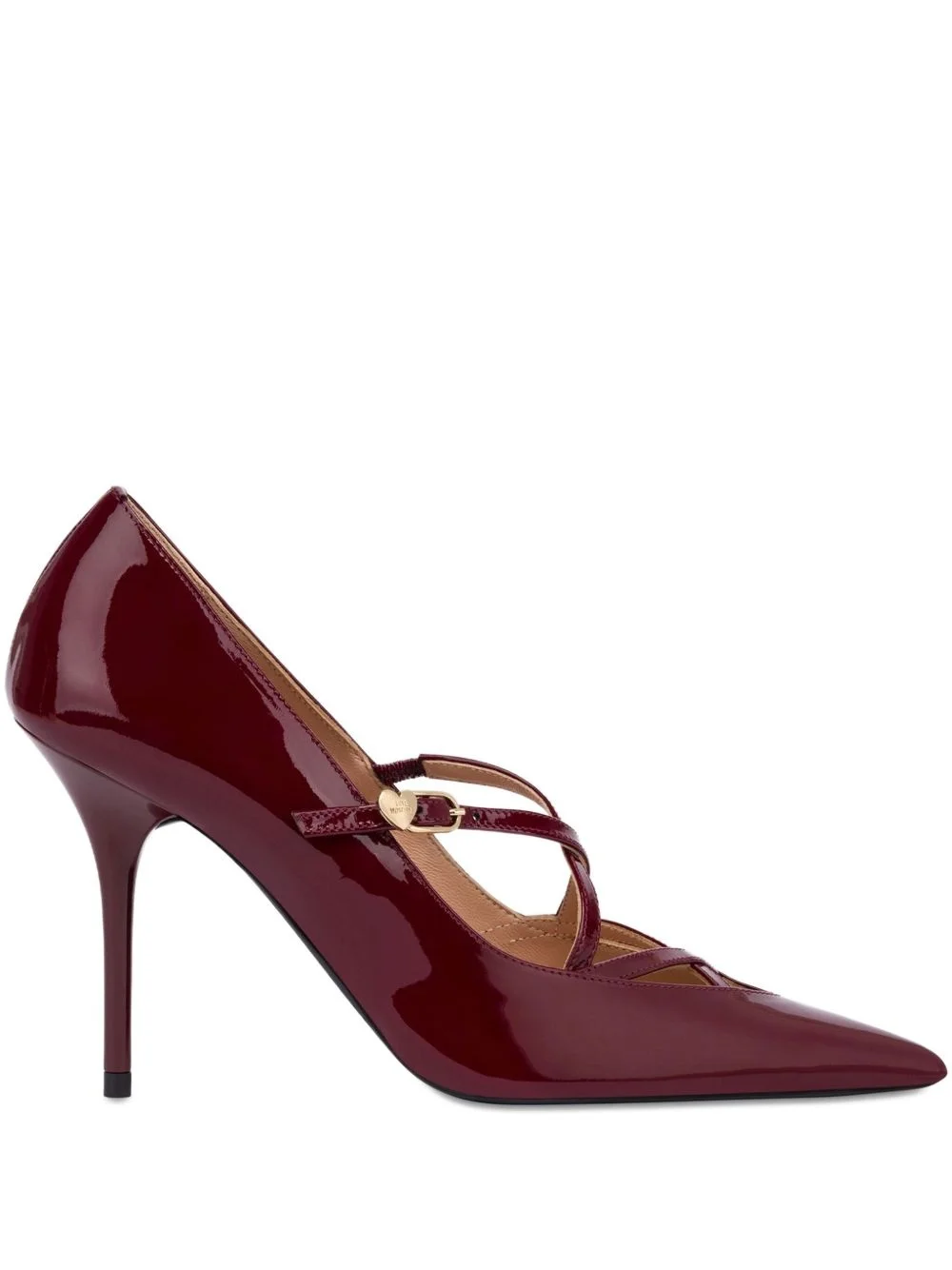 leather pumps Highlights - Bordeaux red - Crossover strap detail - Pointed toe - High stiletto heel Made in Italy Composition Sole: Calf Leather 100% Lining: Calf Leather 100% Outer: Patent Leather 100%