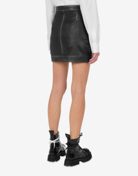 HEAVY NAPPA LEATHER MINI SKIRT WITH SILVER-TONE BIKER DETAILS, SUCH AS ZIP POCKETS AND A DECORATIVE BELT AT THE HEM. PRODUCT DETAILS REGULAR FIT - HIGH WAIST - TWO ZIPPED POCKETS - DECORATIVE FLAP ON FRONT - BELT DETAIL WITH METAL BUCKLE - LINED FABRIC: 100% BUFFALO SKIN - LINING: 52% CELLULOSE ACETATE, 48% VISCOSE SKU: AEF251D J370504710555 FITTING & DIMENSIONS - MODEL HEIGHT: 180 CM - MODEL BUST: 80 CM - MODEL WAIST: 60 CM - MODEL HIPS: 89 CM - MODEL SIZE: 40