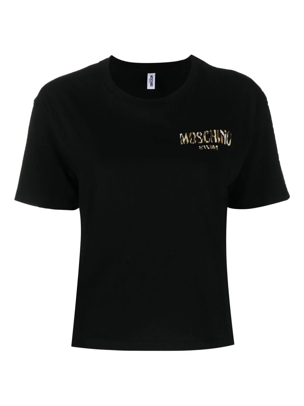 leopard-print logo T-shirt black/brown cotton jersey knit logo print at the chest leopard print crew neck short sleeves straight hem Imported Composition Cotton 100% Washing instructions Machine Wash