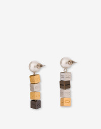 THE RESORT 2026 COLLECTION FEATURES DROP EARRINGS WITH PEARLS AND METAL CUBES ENGRAVED WITH LETTERS THAT FORM THE LOGO. PRODUCT DETAILS - METAL PENDANTS - BUTTERFLY CLASP FABRIC: 20% BRASS, 40% ZAMAC, 40% POLYESTER SKU: AEF26171A911884101888