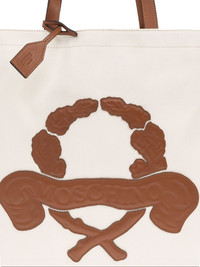 logo-debossed shoulder bag Highlights - Light beige - Two long top handles - Rectangle shape - Main compartment Made in Italy Composition Outer: Organic Cotton 80%, Fabric 20%