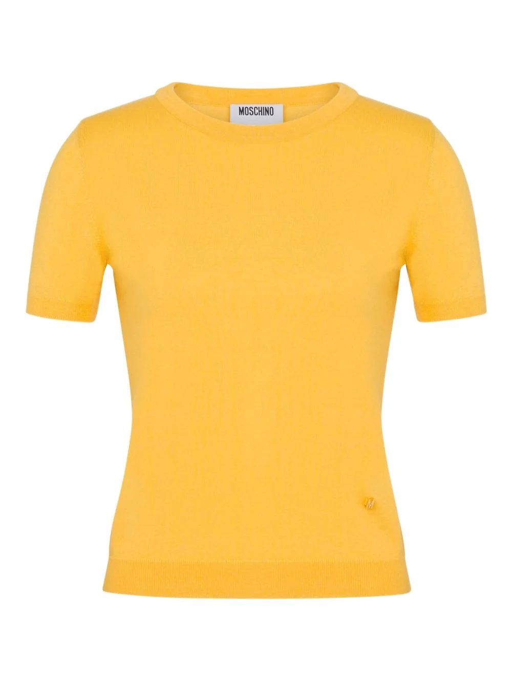 logo-detailing knitted top Highlights - Yellow - Round neck - Short sleeves - Tonal logo detailing Made in Italy Composition Virgin Wool 70%, Silk 30% Washing instructions Read Manufacturer Guidelines