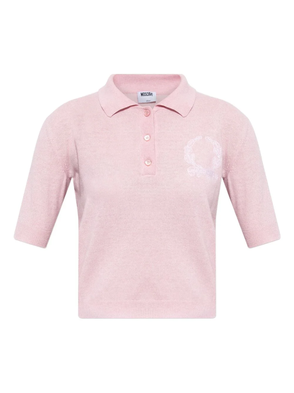 logo-embroidered polo shirt Highlights - Pink - Logo embroidery - Short sleeves - Polo collar - Button fastening Made in Italy Composition Polyamide 35%, Wool 30%, Viscose 30%, Cashmere 5%