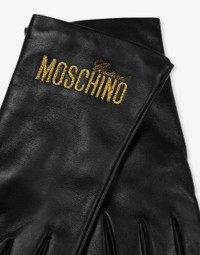 SOFT NAPPA LEATHER GLOVES WITH GOLD MOSCHINO COUTURE LOGO EMBROIDERY. PRODUCT DETAILS - GOLD LUREX YARN EMBROIDERED LOGO - WOOL LINING FABRIC: 100% WOOL, 100% LEATHER SKU: LSEQ065248D0M2394VL16