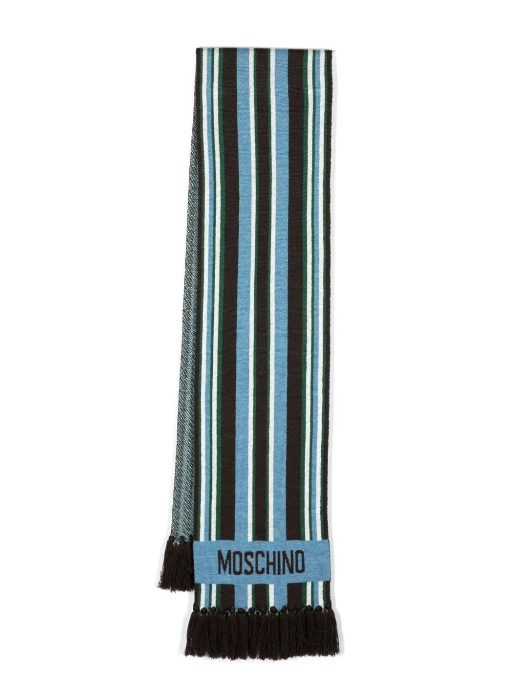 logo-intarsia striped scarf Highlights - Cornflower blue/multicolour - Wool - Knitted construction - Striped intarsia knit - Intarsia-knit logo - Wraparound style - Rectangle shape - Tasselled edge Made in Italy Composition Wool 100% SIZE & FIT Measurement LENGTH 70.86 in(180 cm) WIDTH 9.84 in(25 cm)