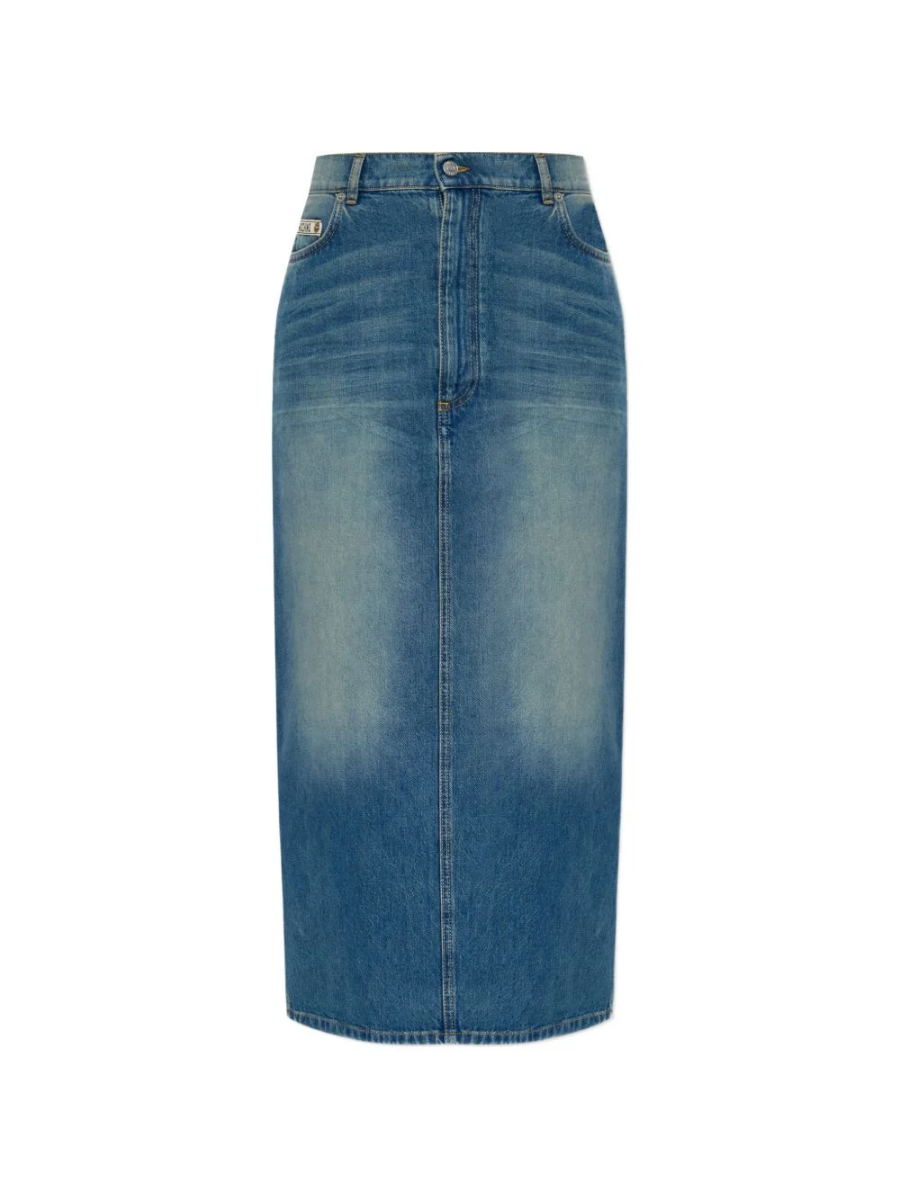 logo-label midi skirt Highlights - Denim blue - Seam detail - Back slit detail - Pocket detail - Belt loops Made in Italy Composition Cotton 100% Washing instructions Read Manufacturer Guidelines