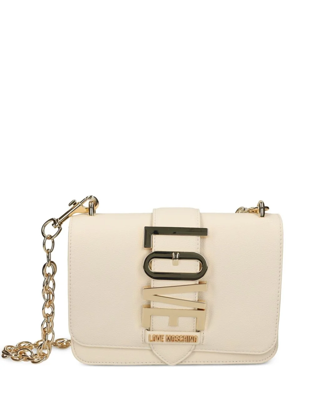 logo-lettering crossbody bag Highlights - Light beige - Foldover top with magnetic fastening - Detachable chain-link shoulder strap - Main compartment - Slip pocket to the front Imported Composition Outer: Thermoplastic Polyurethane (TPU) 100%