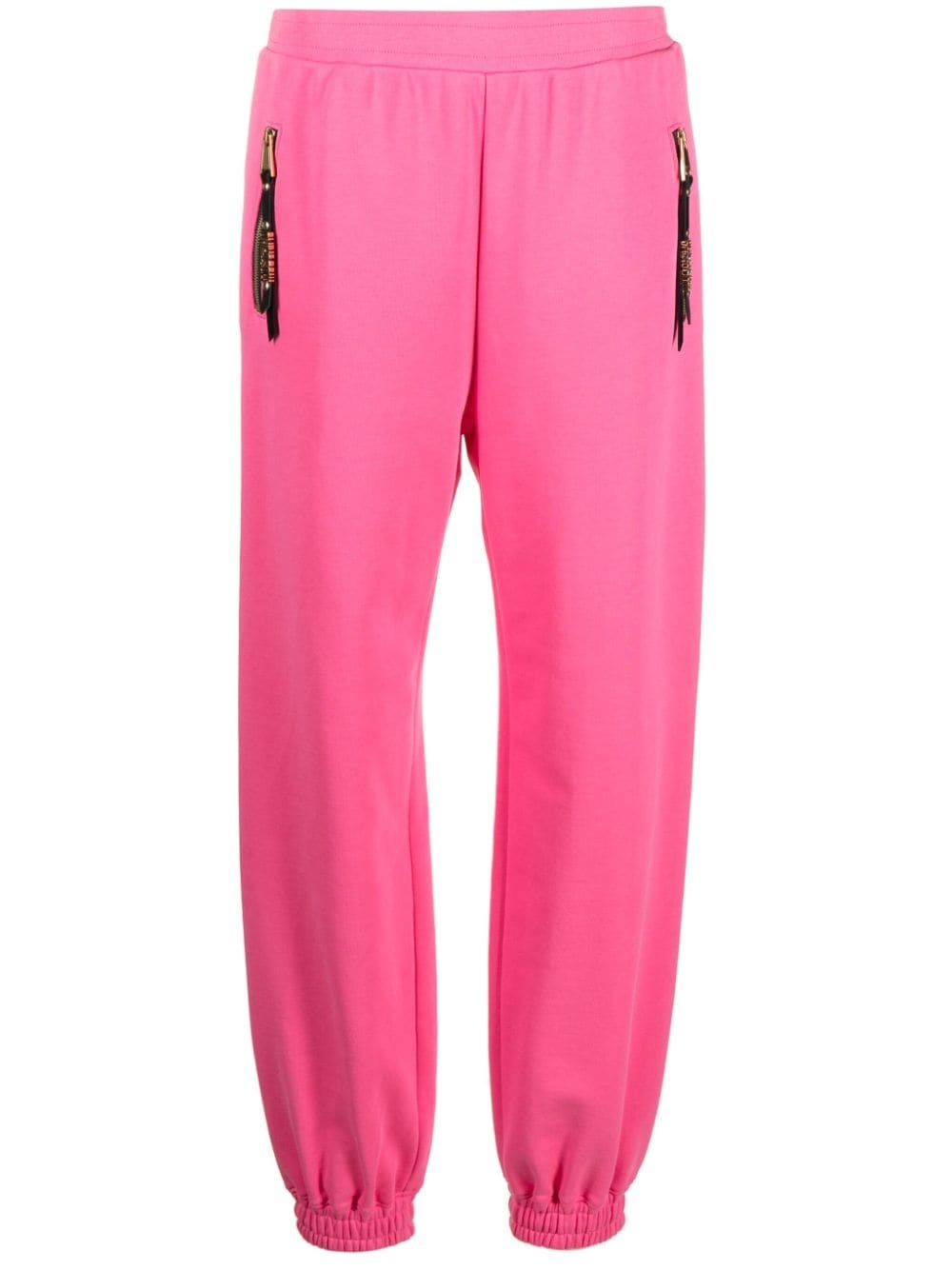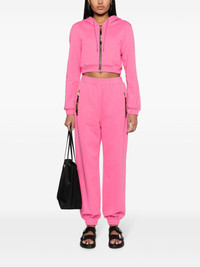 logo-lettering jersey track pants Highlights - Pink - Organic cotton - Jersey texture - Gold-tone logo lettering - Branded zip puller - Tapered leg - High-waisted - Elasticated waistband - Two side zip-fastening pockets - Rear welt pocket - Elasticated ankles - This item is made from at least 50% organic materials. - Learn more about what makes a product conscious on our conscious criteria page Imported Composition Organic Cotton 100% SIZE & FIT Model measurements Height 5 ft 11 in(1.8 m) Bust/Chest 31.1 in(79 cm) Hips 35 in(89 cm) Waist 24.8 in(63 cm) FittingInformation Designed for a relaxed tapered cut, these trousers allow for a close fit at the waist and offer a loose fit at the thighs, with a closer fit toward the ankles The elasticated waist allows for a comfortable fit Made from a midweight non-stretch fabric, this piece offers minimal elasticity when worn This piece fits true to size – take your usual size