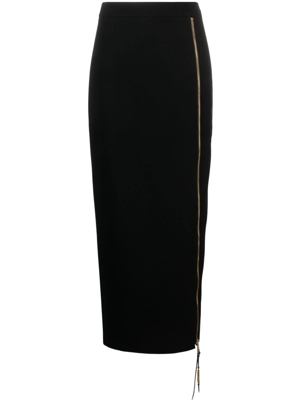 logo-lettering straight midi skirt Designed with a crepe texture, this Moschino maxi skirt is fit to the body. The all-black design has a side-zip fastening from the hem to the waistband in gold-tone hardware. Pending from a zip-tab, is the brand's logo lettering in polished metal. Highlights - Black - Crepe texture - High-waisted - Concealed rear zip fastening - Zip-fastening front split - Branded zip puller - Gold-tone logo lettering - Mid-length Made in Italy Composition Outer: Acetate 70%, Viscose 30% Lining: Acetate 83%, Silk 17% SIZE & FIT Model measurements Height 5 ft 10 in(1.79 m) Bust/Chest 31.49 in(80 cm) Hips 35.03 in(89 cm) Waist 23.62 in(60 cm) FittingInformation This midi-length skirt is intended to be worn high on the waist The vented hem offers movement at the rear Made from a midweight non-stretch fabric This piece fits true to size – take your usual size Washing instructions Dry Clean Only