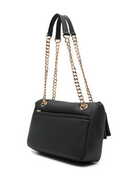 logo-lettering strap shoulder bag Highlights - Black - Gold-tone logo motif - Flap closure - Internal zip pocket Imported Composition Outer: Polyurethane 100% SIZE & FIT Model measurements Height 5 ft 11 in(1.8 m) Bust/Chest 31.49 in(80 cm) Hips 36.61 in(93 cm) Waist 24.4 in(62 cm) Measurement DEPTH 3.54 in(9 cm) HEIGHT 7.08 in(18 cm) WIDTH 11.41 in(29 cm)
