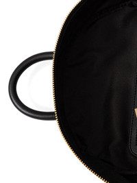 logo-lettering top-handle backpack Highlights - Black - Top handle - Gold-tone logo lettering - Zip fastening - Adjustable shoulder straps Imported Composition Fabric 100%, Leather 100%