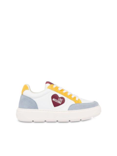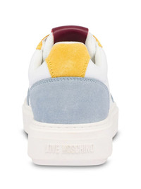 logo-patch panelled sneakers Highlights - White/yellow/grey - Calf leather - Panelled design - Logo patch to the side - Front lace-up fastening - Almond toe - Flat rubber sole Imported Composition Leather 100%