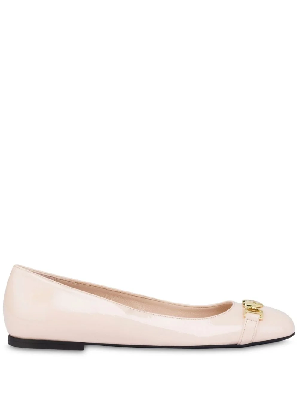 logo-plaque ballerina shoes Highlights - Light pink - Leather - Patent finish - Slip-on style - Logo plaque - Round toe - Rubber sole Imported Composition Leather 100%