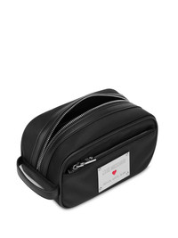 logo-plaque make up bag Highlights - Black - Silver-tone logo plaque - Front zip-fastening pocket - Zip-fastening compartment - Single flat side handle - Rear zip-fastening pocket Imported Composition Outer: Polyester 80%, Polyurethane 20%
