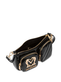 logo-plaque shoulder bag Highlights - Black - Quilted - Gold-tone logo plaque - Heart charm - Detachable shoulder strap - Detachable chain-link shoulder strap - Top zip fastening - Main compartment - Internal slip pocket - Front zip fastening pockets Imported Composition Outer: Polyurethane 100% SIZE & FIT Measurement DEPTH 2.75 in(7 cm) WIDTH 9.44 in(24 cm) HEIGHT 4.72 in(12 cm)