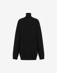 A SWEATER WITH A HIGH COLLAR MADE OF EXTRA-FINE MERINO WOOL, OVERSIZED FIT, WITH A LARGE CUT-OUT ON THE BACK. THE GARMENT IS PERSONALIZED WITH THE SMALL LETTER M OF MOSCHINO IN GOLD GALVANIC FINISH. OVERSIZE FIT METAL LETTER M ON THE FRONT DROPPED SHOULDERS FABRIC: 100% PURE WOOL CODE: AEF242D 091654010555 FIT MODEL BUST SIZE: 82 CM MODEL HEIGHT: 1.78 CM MODEL HIPS: 88 CM MODEL SIZE: 40 CM MODEL WAIST: 60 CM
