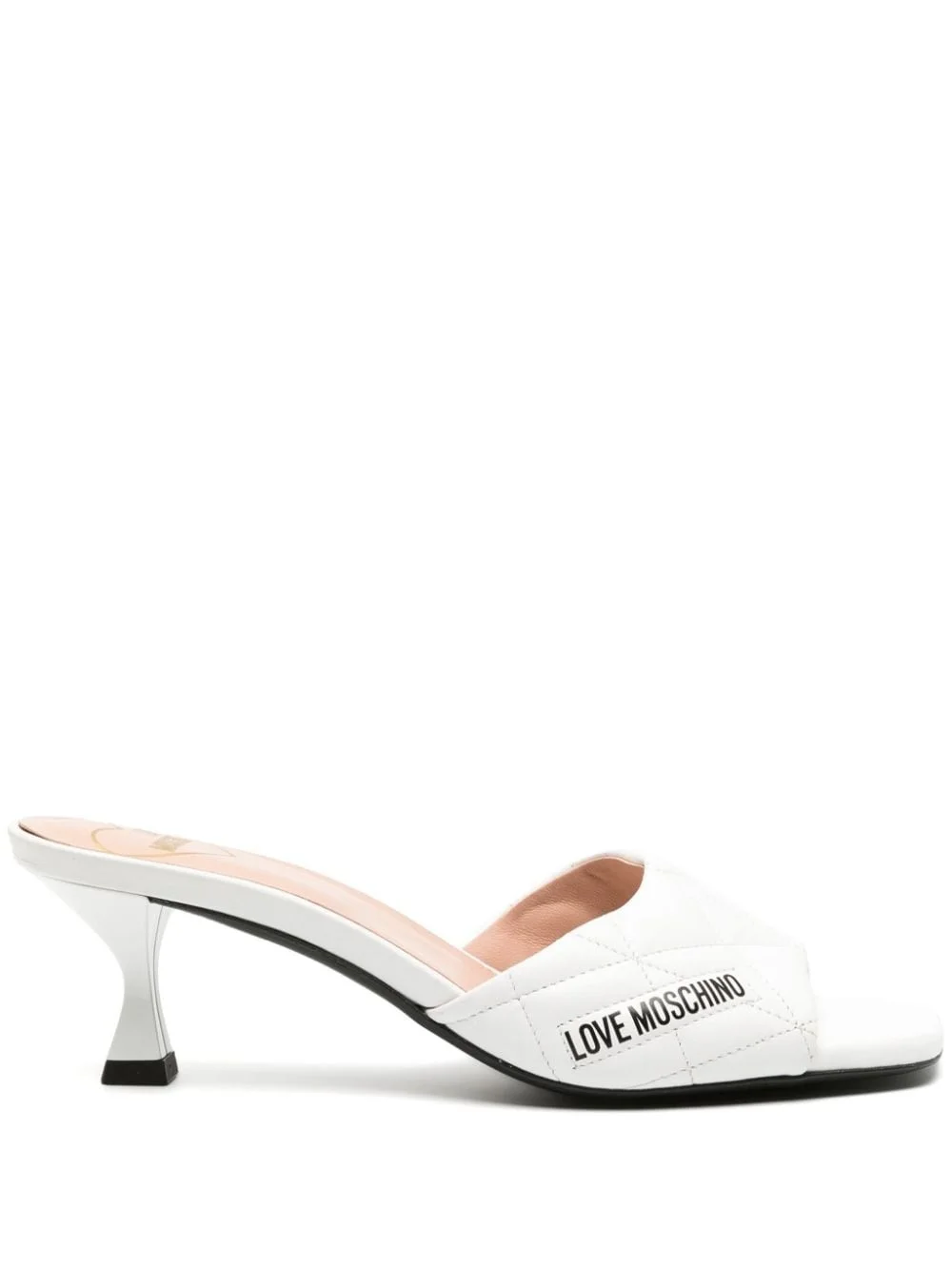 65mm logo-print sandals Highlights - White - Quilted - Logo print to the side - Single toe strap - Square open toe - Slip-on style - Branded leather insole - Mid sculpted heel - Rubber sole Made in Italy Composition Leather 100% SIZE & FIT Measurement HEEL 1.96 in(5 cm)