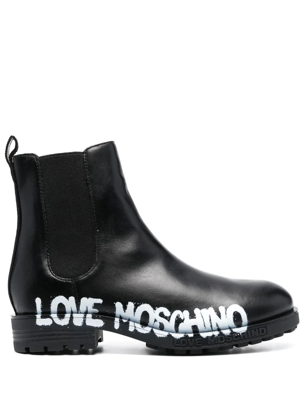 logo-print ankle boots black calf leather logo print to the side graffiti print elasticated side panels pull-tab at the heel rubber sole Imported Composition Leather 100% SIZE & FIT Measurement HEEL 1.77 in(4.5 cm) HEIGHT 5.51 in(14 cm) Sole height 1.37 in(3.5 cm)