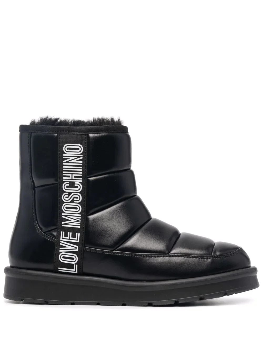 logo-print chunky boots jet-black/bright-white logo print to the side round toe quilted slip-on style Made in Italy Composition Outer: Polyester 100% Sole: Rubber 100% Lining: Artificial Fur 100%