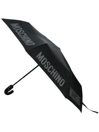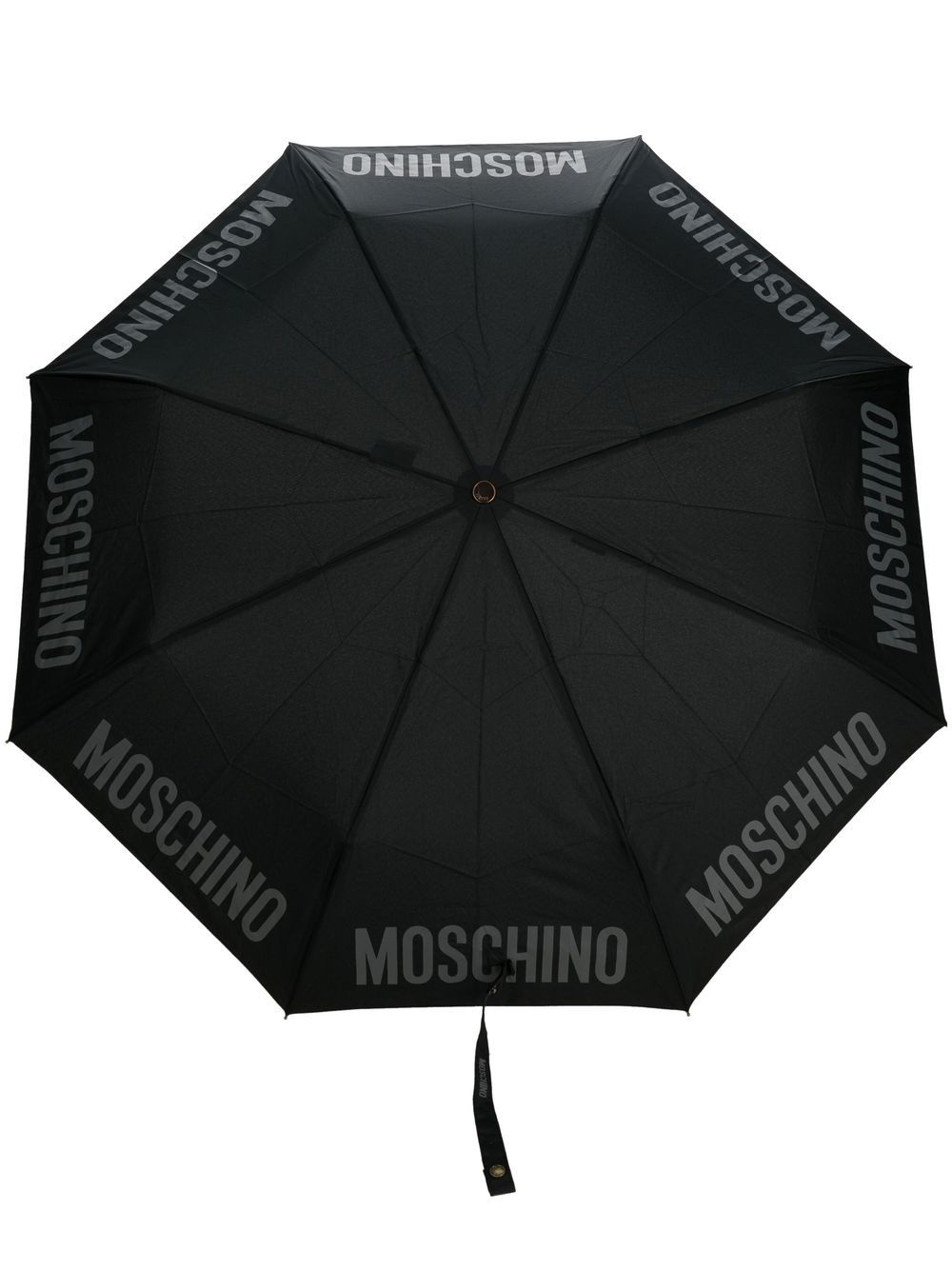 logo-print compact umbrella black/grey logo print to the front waterproof press-stud fastening curved handle slipcase Imported Composition Polyester 100%