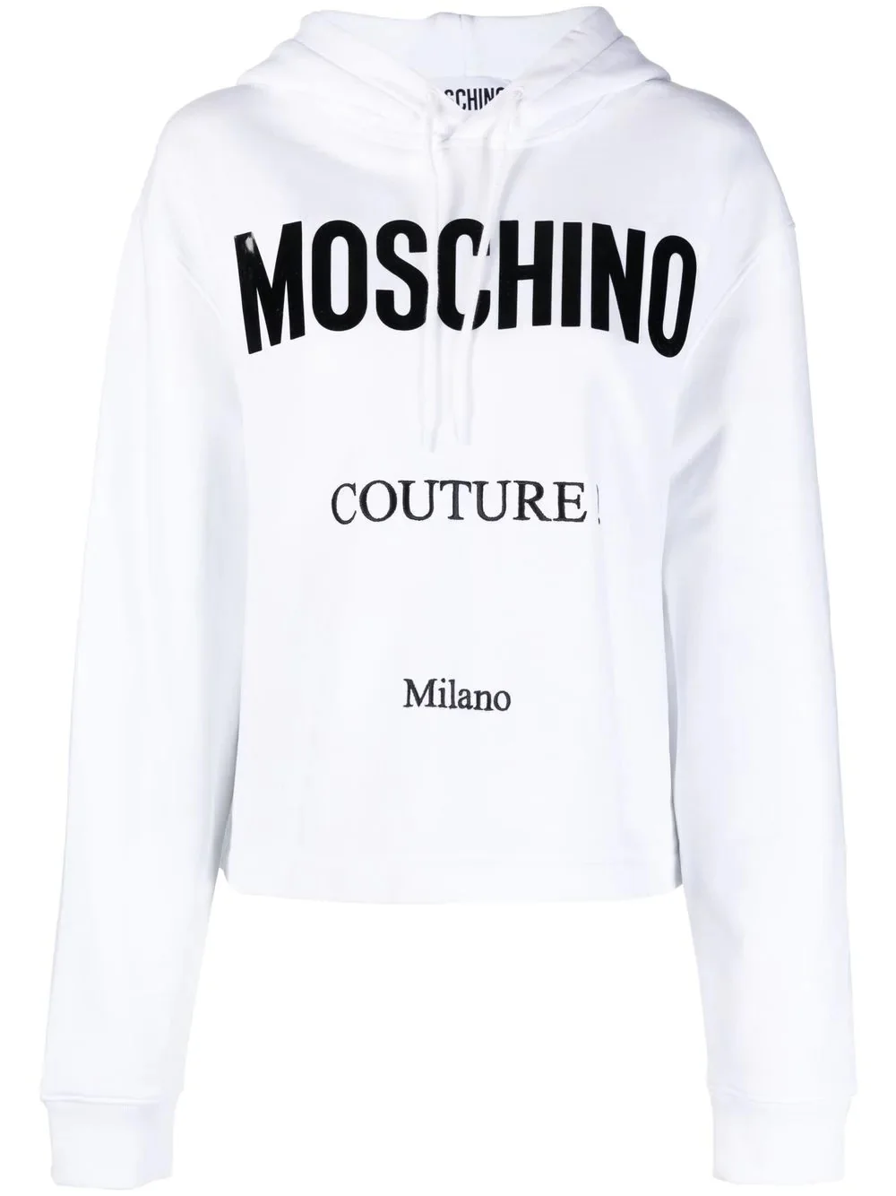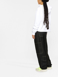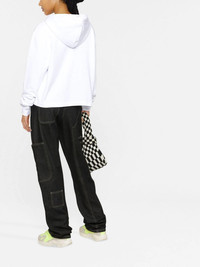 logo-print cropped hoodie Highlights - Off-white/black - Organic cotton - Logo print at the chest - Drawstring hood - Drop shoulder - Long sleeves - Ribbed cuffs - Straight hem Imported Composition Organic Cotton 100% SIZE & FIT Model measurements Height 5 ft 10 in(1.78 m) Bust/Chest 30.31 in(77 cm) Hips 36.61 in(93 cm) Waist 24.8 in(63 cm) FittingInformation This piece fits true to size. We recommend you get your regular size Cut for a loose fit Made with a mid-weight fabric Washing instructions Hand Wash