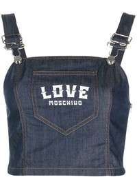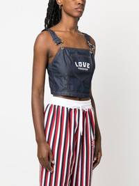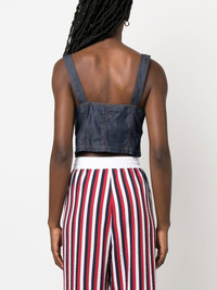 logo-print denim top blue/white cotton square neck sleeveless front patch pocket straight hem Made in Italy Composition Cotton 100% SIZE & FIT Model measurements Height 5 ft 10 in(1.77 m) Bust/Chest 29.92 in(76 cm) Hips 34.25 in(87 cm) Waist 23.62 in(60 cm) FittingInformation This piece fits true to size. We recommend you get your regular size Cut for a slim fit Made with a mid-weight non-stretch fabric Washing instructions Machine Wash