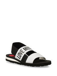 logo-print sandals Highlights - Black/white - Logo print to the front - Slingback strap - Round open toe - Branded footbed - Flat sole Imported Composition Other fibres 100%