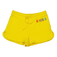 Sun yellow organic cotton logo-print track shorts from MOSCHINO featuring jersey fleece, logo print to the front, drawstring fastening waist and thigh-length. POSITIVELY CONSCIOUS: This Planet Conscious product is made from at least 50% organic materials, which helps you support organic farming practices such as the restricted use of synthetic chemicals and genetically modified seeds, improved soil fertility and better livestock management.. Highlights - Sun yellow - Organic cotton - Jersey fleece - Logo print to the front - Drawstring fastening waist - Thigh-length - Positively conscious: this planet conscious product is made from at least 50% organic materials, which helps you support organic farming practices such as the restricted use of synthetic chemicals and genetically modified seeds, improved soil fertility and better livestock management. Imported Composition Organic Cotton 100%