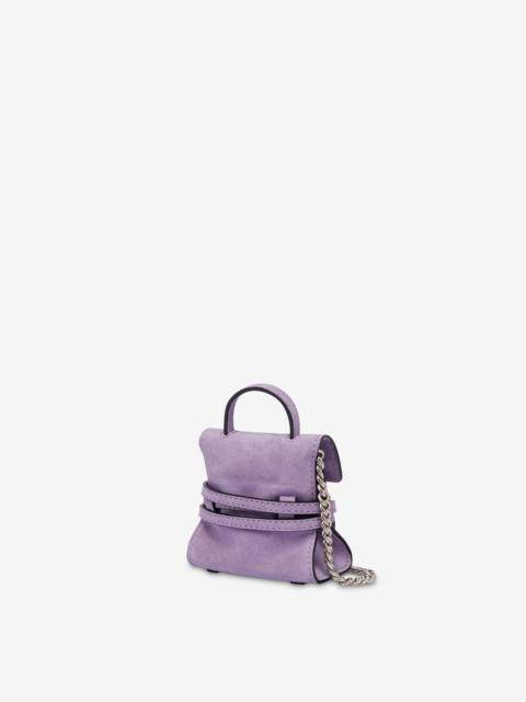 MICRO SUEDE BAG WITH AN INTENTIONALLY SOFT CONSTRUCTION. DISTINCTIVE FEATURE IS THE DECORATIVE, FULLY DETACHABLE BELT THAT HUGS THE BODY OF THE BAG. WITH REMOVABLE HANDLE AND CHAIN, IT CAN BE WORN ON THE WRIST, AS A BANDOLIER OR AS A CHARM. PRODUCT DETAILS - MICRO SIZE - LOGO ON FLAP - REMOVABLE HANDLE WITH SNAP HOOK - REMOVABLE CHAIN STRAP - LINED INTERIOR - LEATHERS USED ARE ALL TOP QUALITY, NATURALLY TANNED AND HAND FINISHED. ANY VEINS OR SMALL IMPERFECTIONS ARE THE VALUE OF IT.FOR CLEANING THE LEATHER, WE SUGGEST USING ONLY NATURAL-BASED PRODUCTS. LINING: 60% POLYAMIDE, 40% POLYURETHANE - UPPER: 100% CALFSKIN SKU: POLMC5409PP1NOF065A