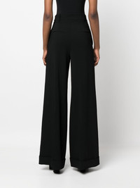 mid-rise palazzo pant black mid-rise belt loops concealed front fastening two side slash pockets two rear jetted pockets wide leg turn-up brim Made in Italy Composition Outer: Viscose 97%, Elastane 3% Lining: Acetate 60%, Cupro 40% SIZE & FIT Model measurements Height 5 ft 11 in(1.8 m) Bust/Chest 31.49 in(80 cm) Hips 36.61 in(93 cm) Waist 24.4 in(62 cm) FittingInformation This piece fits true to size. We recommend you get your regular size Designed to be fitted at the waist and hips, loose over the leg Made with a mid-weight stretch fabric Washing instructions Dry Clean Only