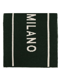 Milano-logo scarf Highlights - Dark green - Milano intarsia-knit lettering - Cream stripes - Rectangular shape Made in Italy Composition Wool 50%, Acrylic 50% SIZE & FIT Measurement LENGTH 70.86 in(180 cm) WIDTH 11.81 in(30 cm)