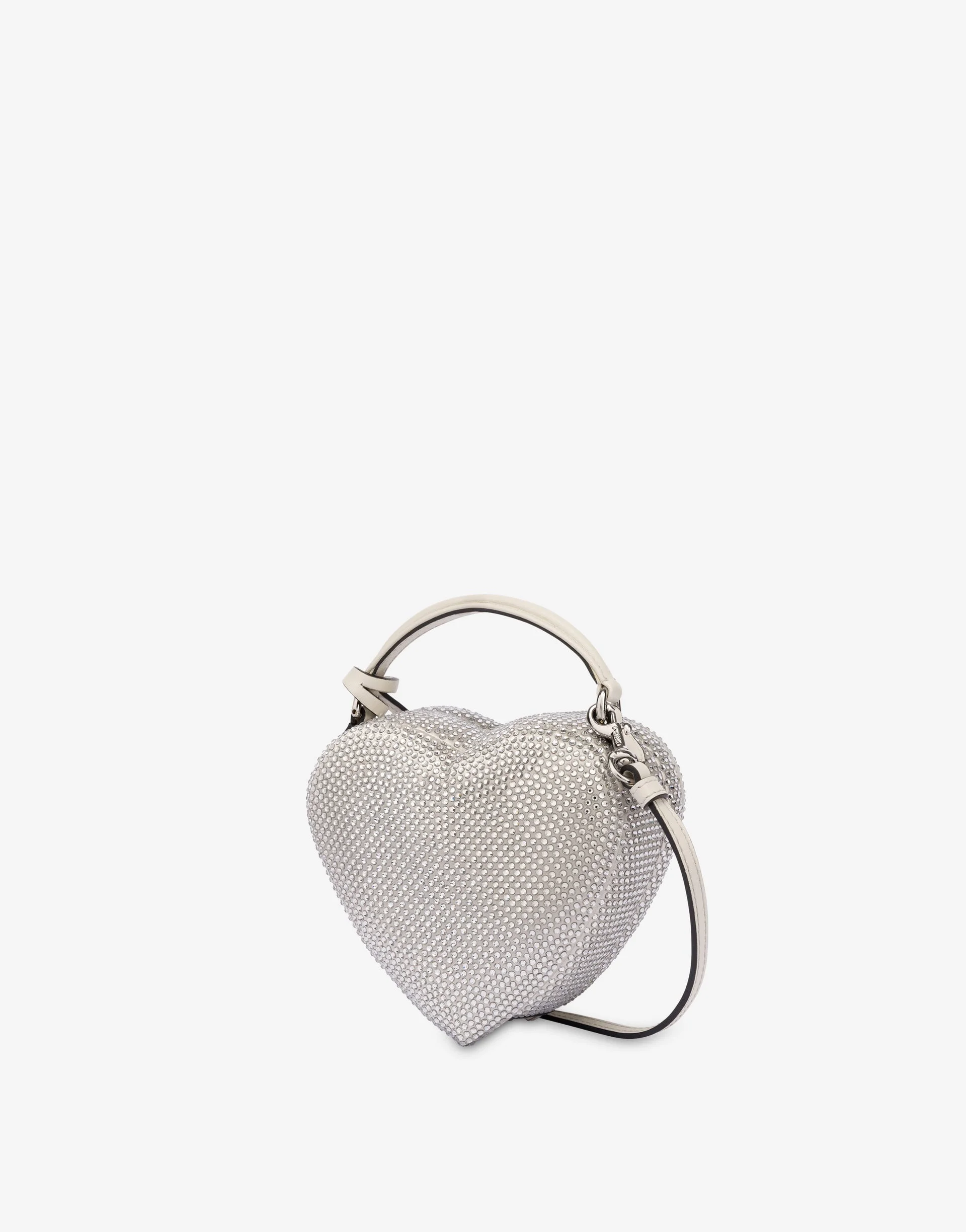 THE FALL/WINTER 2025 PRE-COLLECTION FEATURES THE HEART-SHAPED MINI HANDBAG, MADE OF SATIN WITH SMALL RHINESTONES. THE FRONT AND BACK PADDING GIVES A SOFT FEEL. PRODUCT DETAILS - FRONT OF THE BAG IS PADDED WITH DOUBLE-LAYER FOAM - REINFORCED HANDLE - REMOVABLE LEATHER LOGO CHARM - ADJUSTABLE AND REMOVABLE SHOULDER STRAP - SILVER GALVANIC - METAL SNAP CLOSURE WITH PRESSED LOGO - LINED UPPER: 60% VISCOSE, 30% SILK, 10% CALFSKIN - LINING: 60% POLYAMIDE, 40% POLYURETHANE SKU: POLMC4023PP1NOR300A FITTING & DIMENSIONS - DEPTH: 9 CM - WIDTH: 16 CM - HEIGHT: 15 CM