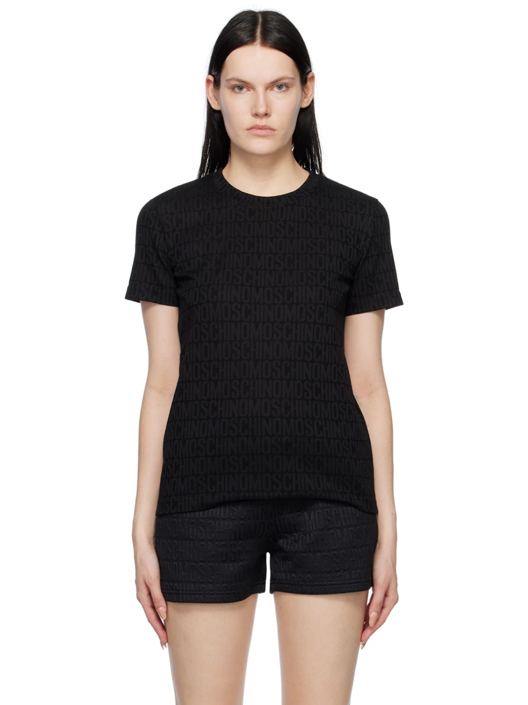 Polyester and cotton-blend jersey T-shirt. · Jacquard logo pattern throughout · Rib knit crewneck Supplier color: Black