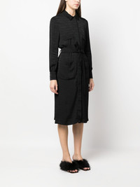 monogram-print shirt dress black silk blend monogram print classic collar long sleeves front button fastening two chest flap pockets belted waist Made in Italy Composition Viscose 79%, Silk 21% SIZE & FIT Model measurements Height 5 ft 11 in(1.8 m) Bust/Chest 31.49 in(80 cm) Hips 36.22 in(92 cm) Waist 25.59 in(65 cm) FittingInformation This piece fits true to size. We recommend you get your regular size Cut for a loose fit. Comes with an adjustable belt for a flexible fit at the waist Made with a mid-weight non-stretch fabric Washing instructions Dry Clean Only