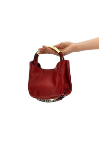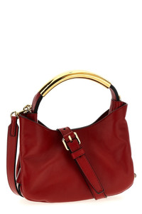 cod. MC4198PP1MOA0500 'Moschino Handle Me bag Small' nappa leather handbag with adjustable decorative belt with metal logo, front embossed logo, handle with tubular metal, magnetic closure, adjustable and removable shoulder strap. Color: Red Size & Fit: W 21 x H 18.5 x D 8 cm Composition: 100% leather Made in: Italy
