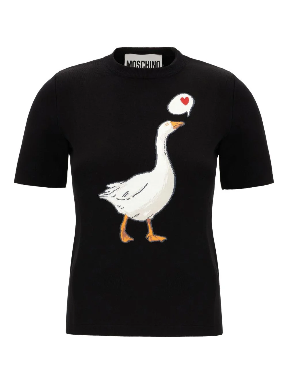 goose-motif short-sleeve cotton sweater Highlights - Black - Goose motif - Short sleeves - Crew neck - Cotton Imported Composition Cotton 100% Washing instructions Read Manufacturer Guidelines