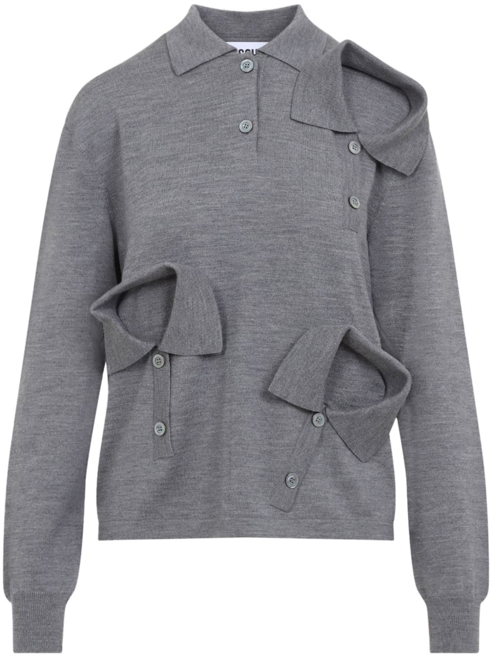 multi-collars polo top Highlights - Heather grey - Short front button fastening - Ribbed cuffs - Long sleeves Imported Composition Wool 100%