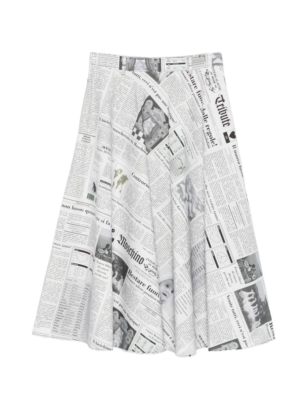 newspaper-print midi skirt Highlights - Black/white - Newspaper print - A-line - Concealed zip fastening Imported Composition Cotton 100% Washing instructions Machine Wash