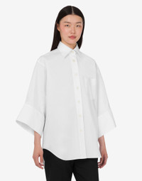 THE FALL/WINTER 2025 COLLECTION FEATURES THE STRETCH COTTON POPLIN SHIRT WITH WIDE THREE-QUARTER SLEEVES. PRODUCT DETAILS OVERSIZE FIT - CLASSIC COLLAR - POCKET ON FRONT - DOWN SHOULDERS - BUTTON FRONT CLOSURE FABRIC: 94% COTTON, 6% ELASTAN SKU: AEF252D J020854311001