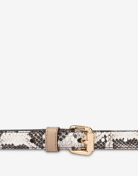 20 MM BELT WITH PATCHWORK IN DIFFERENT MATERIALS AND TEXTURES, JOINED BY GOLD GALVANIC STUDS AND SILVER GALVANIC METALLIC POINTS, ADDING A TOUCH OF GRIT AND MODERNITY. PYTHON PRINT CALFSKIN CROC PRINT CALFSKIN SUEDE ADJUSTABLE METAL BUCKLE CLOSURE FABRIC: 100% SHEEPSKIN CODE: AEF2422 807480022888 FIT HEIGHT: 20 CM