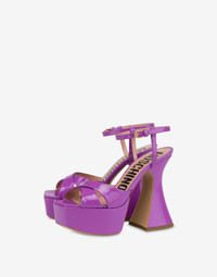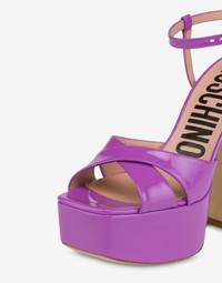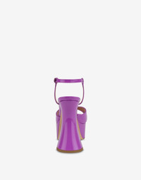 Platform sandals in patent leather, with a flared chunky heel and ankle strap. - Square toe - Ankle strap with buckle - High chunky heel - Insole with logo print - Leather sole Bottom:100% Calfskin Lining:100% Goatskin Upper:100% Calfskin Code: POLMA1640CC1GMB0668 FIT - Heel Height : 6.5 cm