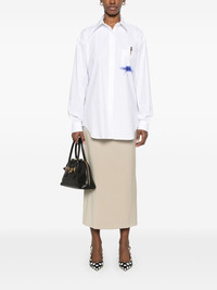pen-print shirt Highlights - White - Front button placket - Buttoned cuffs - Chest patch pocket - Curved hem Made in Italy Composition Cotton 94%, Spandex/Elastane 6% SIZE & FIT Model measurements Height 5 ft 10 in(1.77 m) Bust/Chest 29.92 in(76 cm) Hips 34.25 in(87 cm) Waist 23.62 in(60 cm) FittingInformation Designed to be unstructured, offering a loose fit throughout Made from a midweight stretch fabric, this piece offers elasticity and flexibility when worn