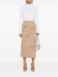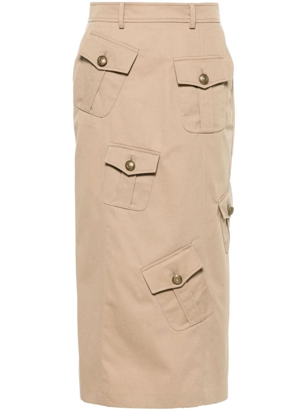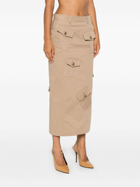 cargo midi skirt Highlights - Beige - Cotton-wool blend - Twill weave - Concealed rear hook and zip fastening - High-waisted - Belt loops - Two side slash pockets - Multiple cargo pockets - Martingale to the rear - Central rear vent - Straight hem - Mid-length Made in Italy Composition Cotton 90%, Wool 10% SIZE & FIT Model measurements Height 5 ft 10 in(1.77 m) Bust/Chest 31.88 in(81 cm) Hips 36.22 in(92 cm) Waist 24.01 in(61 cm) FittingInformation This midi-length skirt is intended to be worn just below the waist The vented hem offers movement at the rear Made from a midweight non-stretch fabric